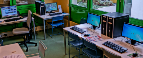 Un cyberespace comprenant 7 postes informatiques est à la disposition du public sur présentation de la carte de la bibliothèque et sur rendez-vous.